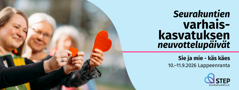 Seurakuntien varhaiskasvatuksen ammattilaiset kokoontuvat kahdeksi inspiroivaksi päiväksi Lappeenrantaan 10.-11.9.2026. Luvassa on kohtaamista, yhteyttä ja uusia oivalluksia lasten, perheiden ja varhaiskasvatuksen työn tueksi teemalla Sie ja mie – käs käes.
